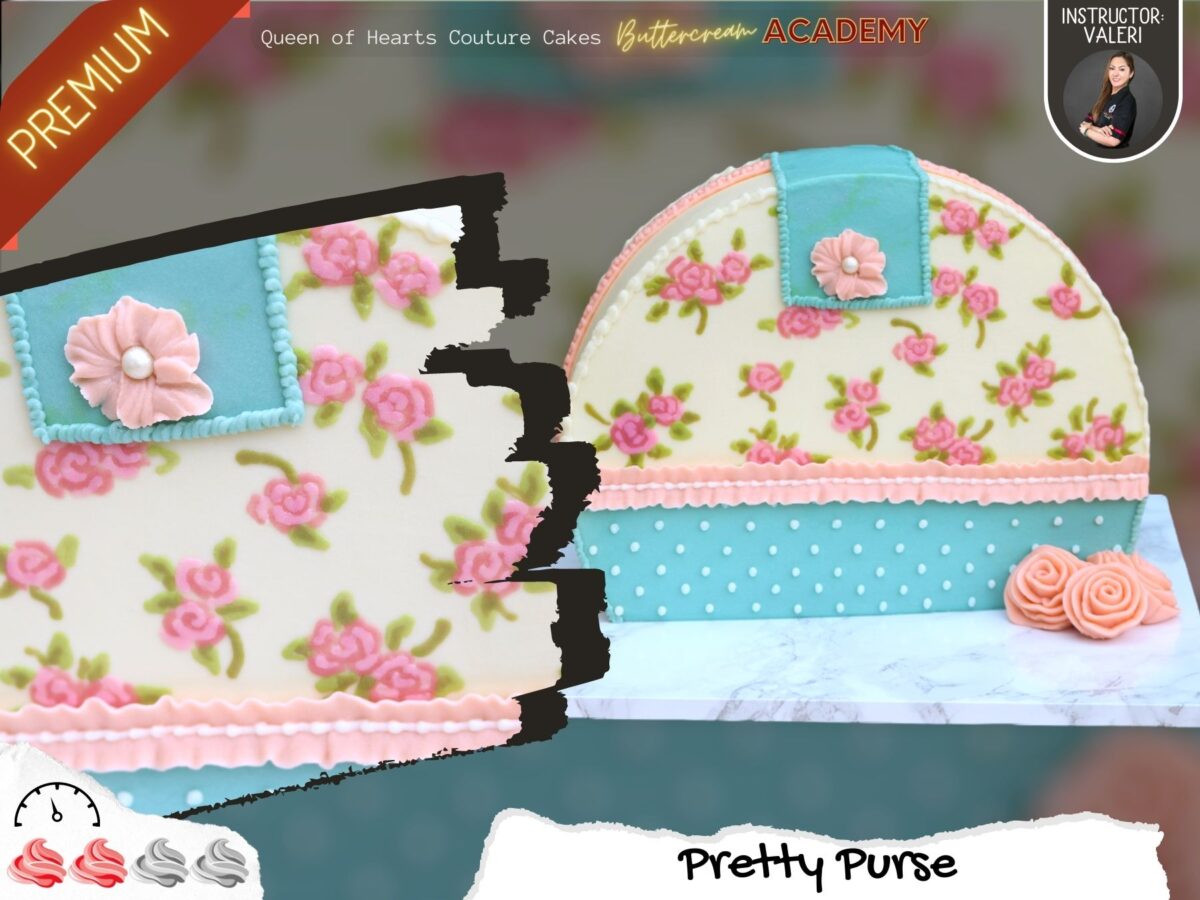 Pretty Purse cake is our take on this stunning cake trend, Cake Top Forward, where your cake will be structured and decorated in an upright position. The vintage look of this cake came from one of our go to inspirations in cake designing – Cath Kidston. Valeri will discuss all the ins and outs of how the structure should be correctly done. Every element of this detailed cake will be explained thoroughly as well.