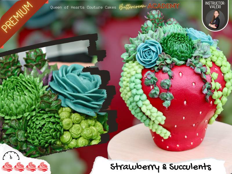 Succulents will be taught thoroughly, discussing all the correct angles and strokes. Valeri will fit as much succulents as possible on the carved strawberry cake but after the class, please take a look on more succulents variety and challenge yourself to recreate them.